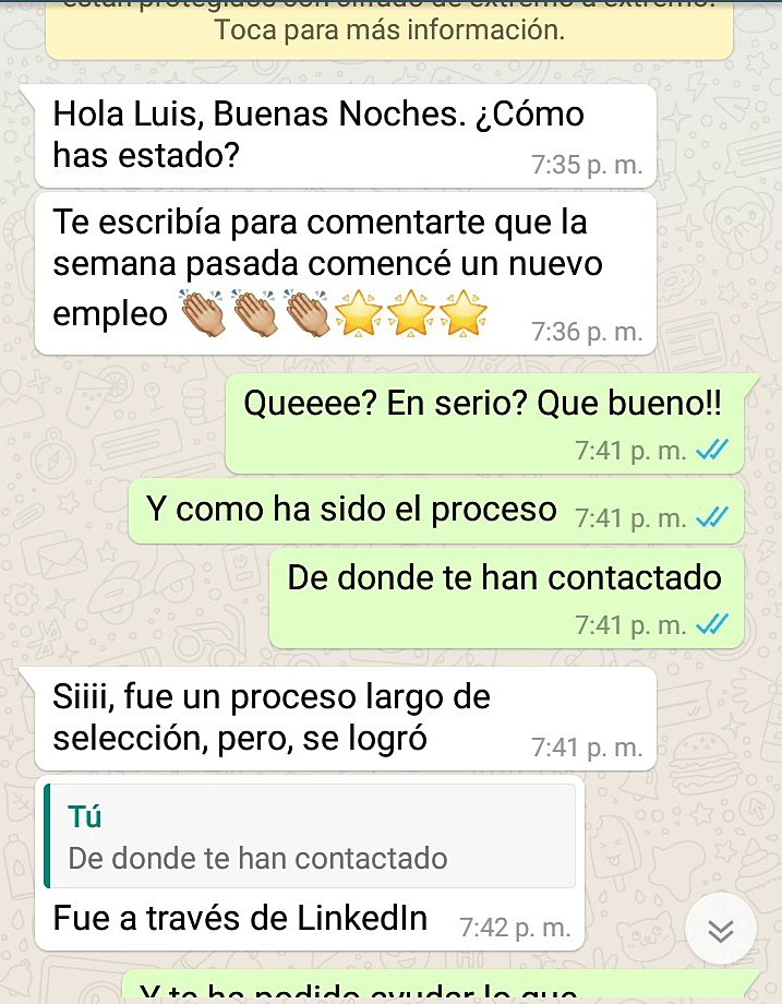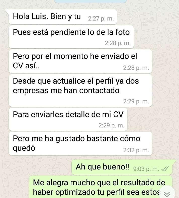 A lo largo de mi trayectoria como Asesor de Carrera y Headhunter, he acompañado a cientos de profesionales en su camino hacia nuevas oportunidades laborales en Europa y Estados Unidos. Los casos de éxito que he guiado me llevaron a convertirme en formador oficial de LinkedIn y en LinkedIn Top Voice, un reconocimiento otorgado a los profesionales más influyentes en la plataforma. Mi objetivo es ayudar a más personas a posicionarse como candidatos atractivos para las empresas, superar entrevistas con confianza y acceder a las oportunidades laborales que realmente desean.
